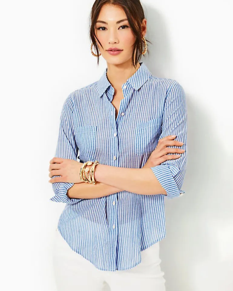 We Love The Versatility Of The Sea View Button Down. Wear Traditionally With Jeans Or Un-Do A Few Buttons To Tie In A Bow With Your Favorite Shorts Or Palazzos.