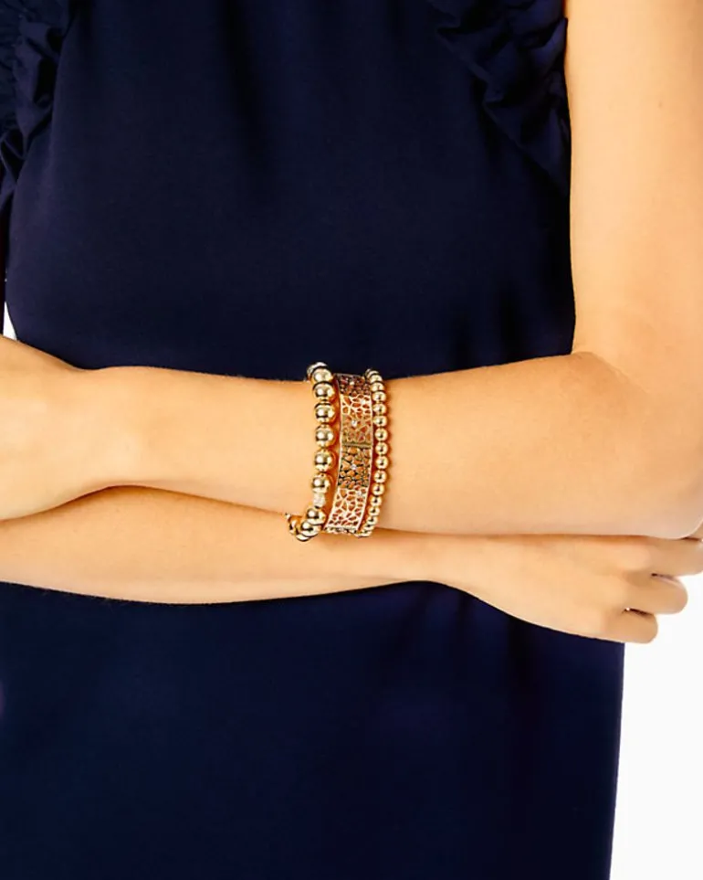 Slip On This Trio Of Bracelets And Add A Golden Touch To Your Ensemble. The Devine Bracelet Set Includes A Lilly Lace Bangle And Two Beaded Bracelets With Pave Accents.