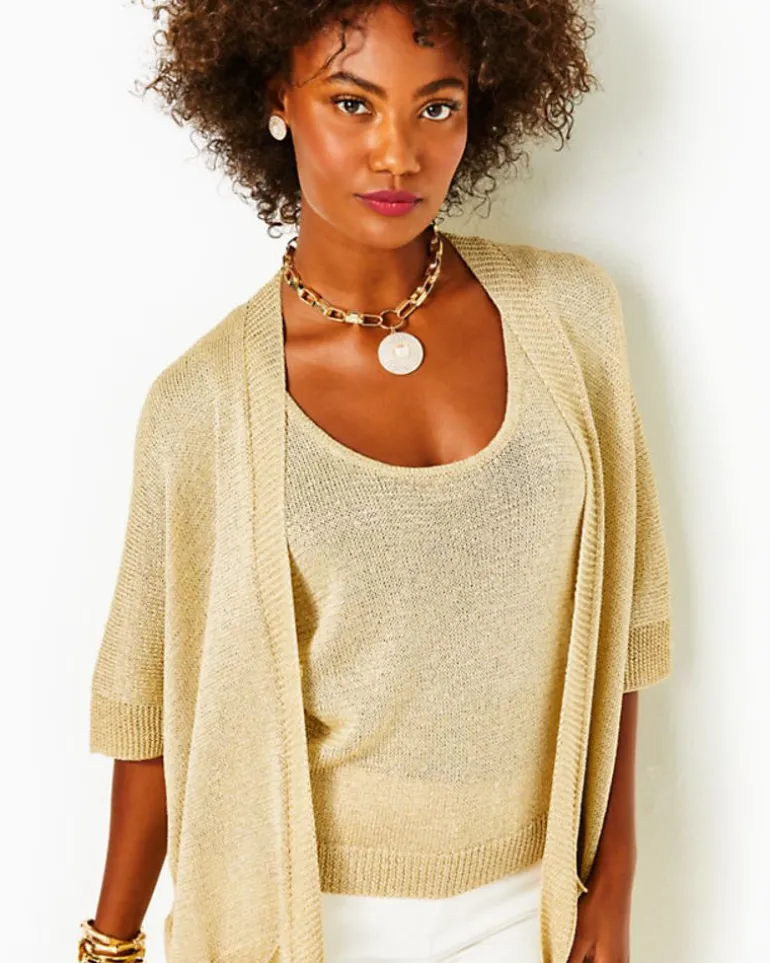 The Batsy Sweater Set Is Your New Wardrobe Staple. This Open-Front Cardigan, Adorned With Playful Decorative Pointelles At The Back Panel, Exudes An Elegant And Chic Attitude.