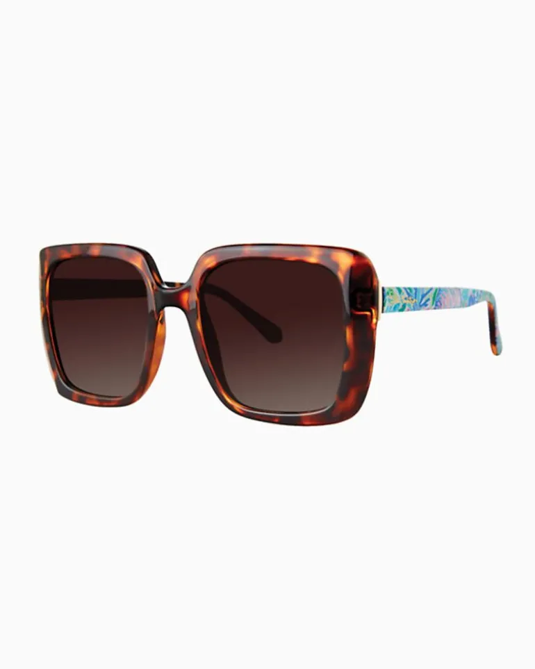 The Chic Square Silhouette Of Our Clearwater Sunglasses Will Make A Bold Style Statement During Your Next Beach Day, Road Trip, Or Resort Getaway. Dark Tortoise Frames Are Accented By A Touch Of Lilly Print At The Temples, While The Polarized Gradient Lenses Offer 100% Uv A/B Protection. Includes Cloth Case.