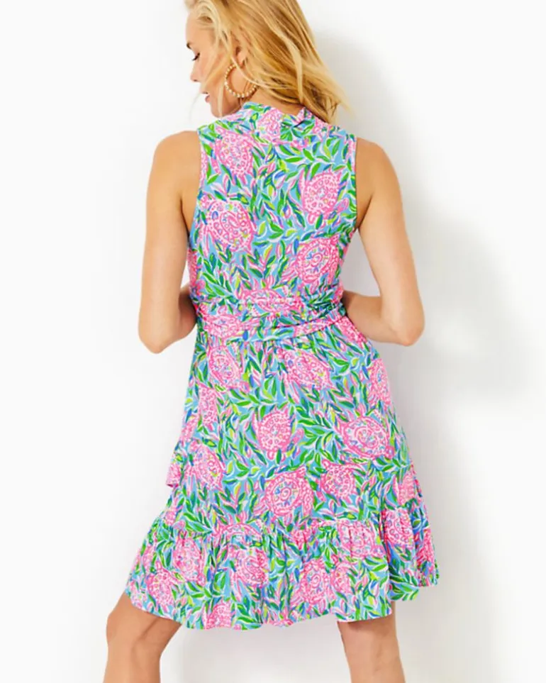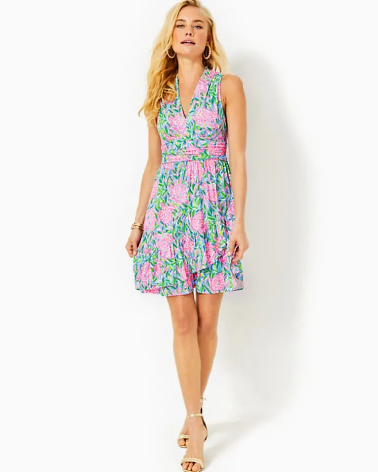 A Skirt Trimmed In Ruffles Adds Romantic Movement To Our Printed Jersey Annalise Dress, A Fit-And-Flare Style With A V-Neckline And Ruched Waistband.