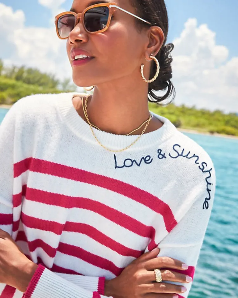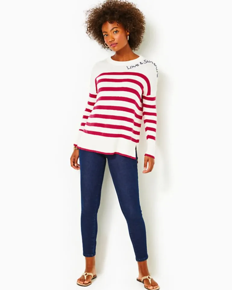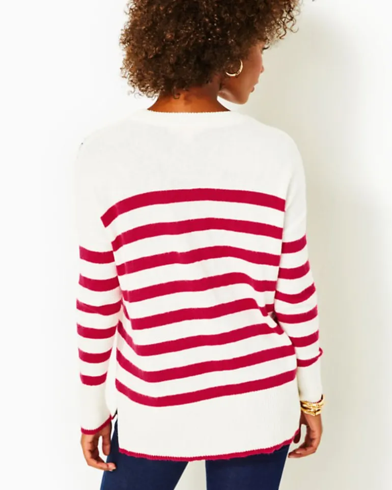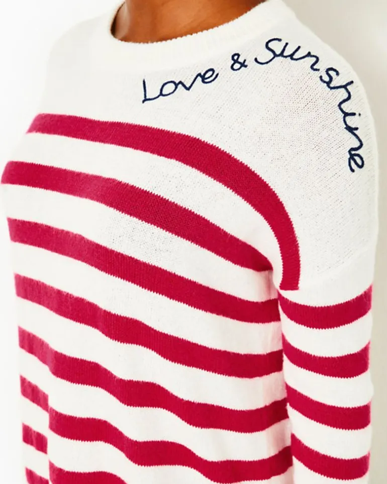 Stay Comfortably Chic In Our Quince Sweater. This Relaxed-Fit, Long-Sleeve Crewneck Features A Stylish Striped Pattern, Drop Shoulders, And A High/Low Hem. With Charming Embroidery At The Neck And Tasteful Tipping At The Hem And Cuffs, It’S The Perfect Addition For Those Chillier Days.