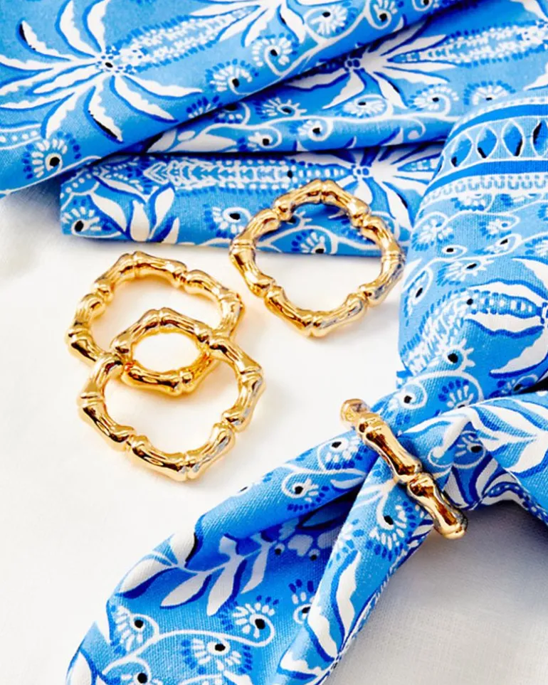Add A Tropical Twist To Your Tablescape With This Set Of Four Golden Bamboo Napkin Rings.