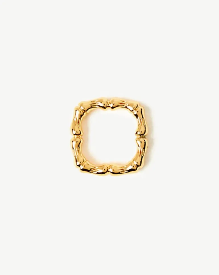 - Set Of 4 Square Bamboo Napkin Rings In Gold Metal.