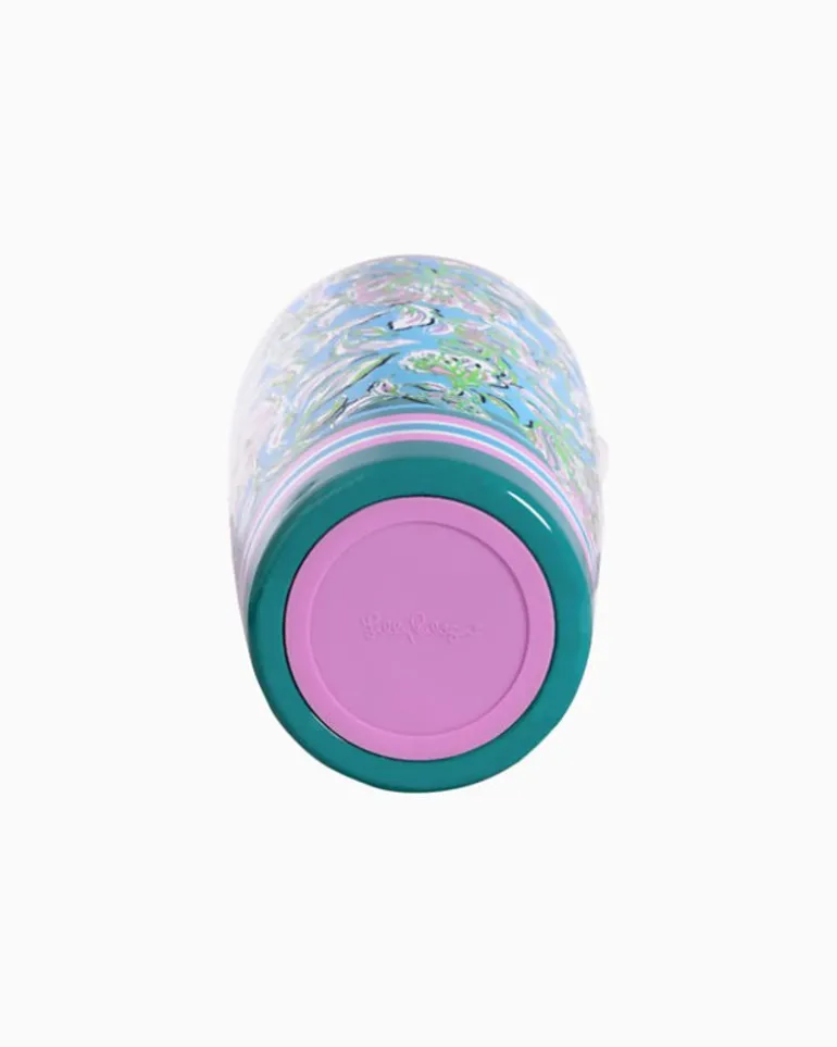 - Double-Wall, Stainless Steel Body With Clear Acrylic Lid And Silicone Seal.