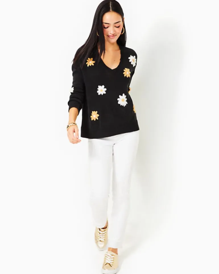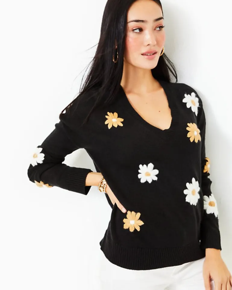 Add Some Flower Power To Your Wardrobe With Our Playfully Embroidered Tensley Sweater, A V-Neck Design With Drop Shoulders And Long Sleeves.