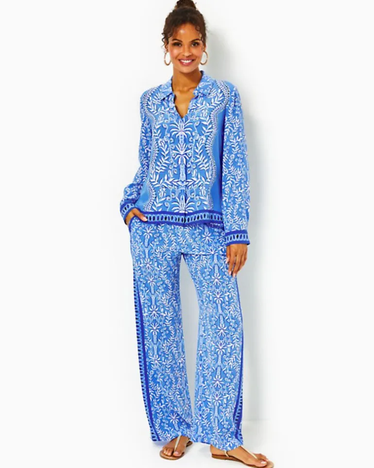 For Resort Style With A Glam Twist, Slip On Our Solay Silk Palazzo. This Flowy Pant Features A High Rise, Wide Leg, And Pull-On Styling, All In A Gorgeous Masterpiece Print.