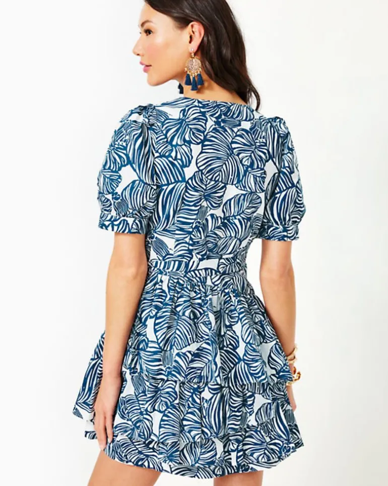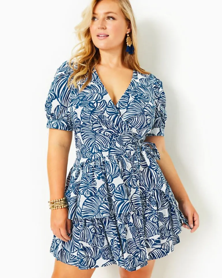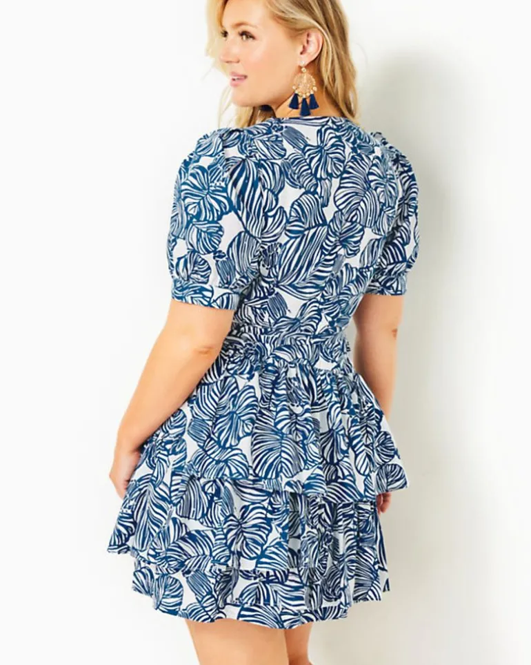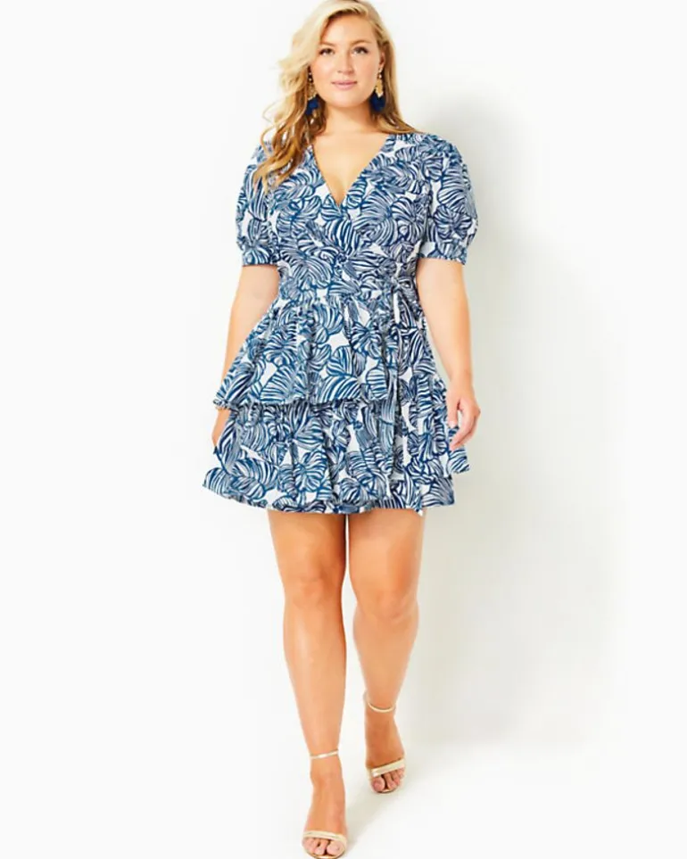 The Alexandria Dress Is A Social Standout In Crisp Cotton Poplin. This Classic Wrap Style With A Surplice Neckline, Tie Waist, And Pleated Elbow-Length Sleeves Also Includes Tiers That Add Playful Movement To Its Above-The-Knee Skirt.