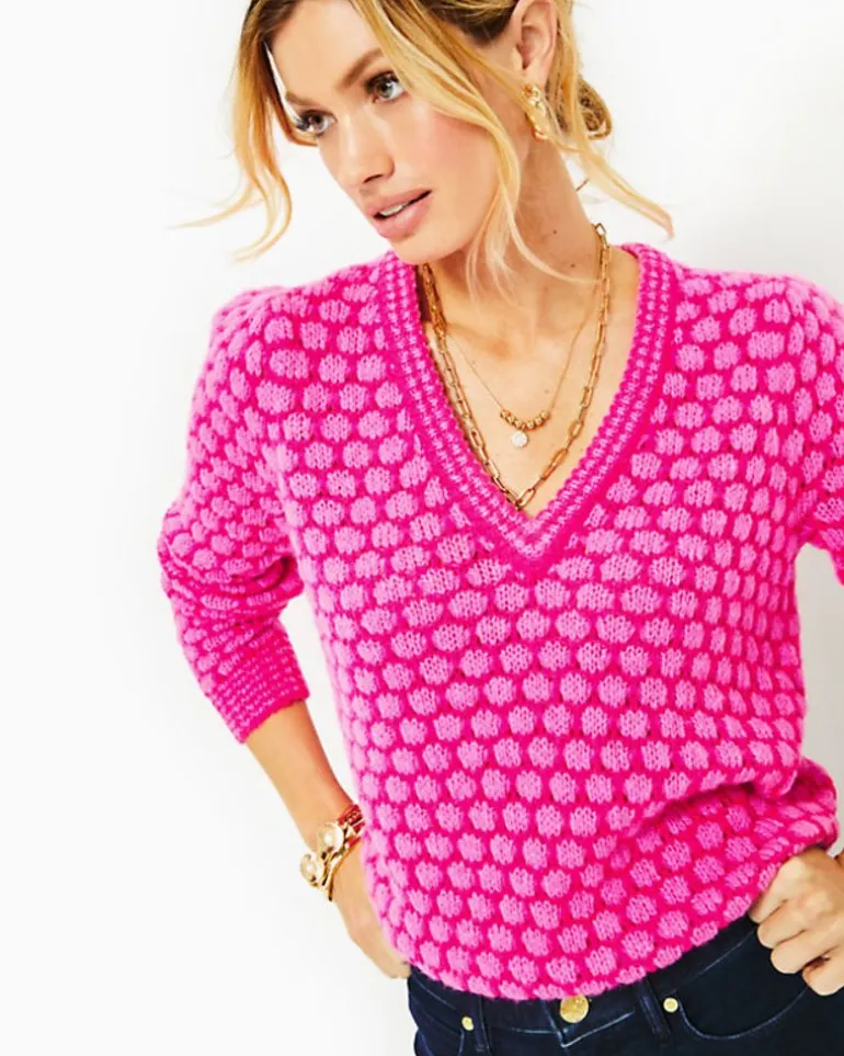 Our Cozy Brista Sweater Is A Straight Fit Style With Long Sleeves, A Classic V-Neckline, And Shoulder Pleats, All Complemented By Two-Tone Textural Stitching.