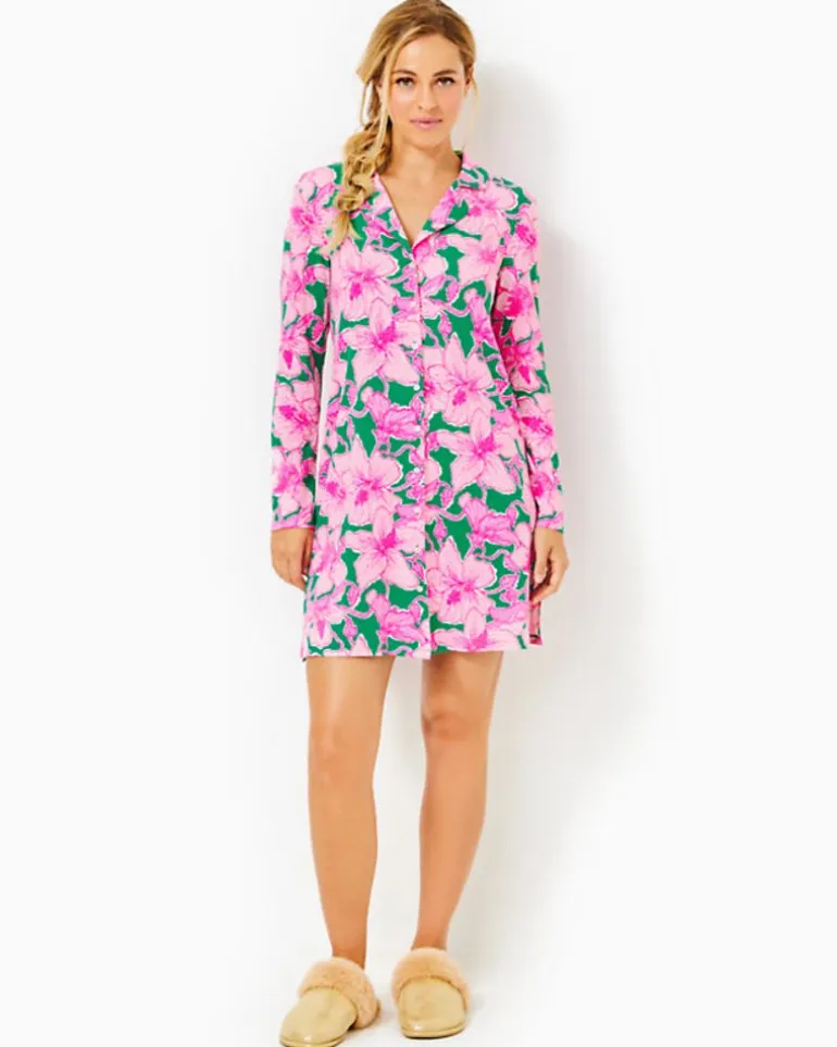 Indulge In Cozy Comfort With Our Chilton Pajama Nightshirt. This Easy-Fit, Long-Sleeve Nightshirt Features A Convenient Button Front, Making It The Perfect Addition To Your Wardrobe For A Night Of Relaxation, Or A Delightful Gift For A Loved One. Made From Partially Recycled Material, Our Cozy Cloud Jersey Is A Buttery Soft Knit Fabric With A Lightly Brushed Finish That Provides You With The Utmost Comfort. This Fabric Drapes Perfectly On Your Body And Won’T Shrink Or Fade As You Wash, Remaining Soft And Cozy.