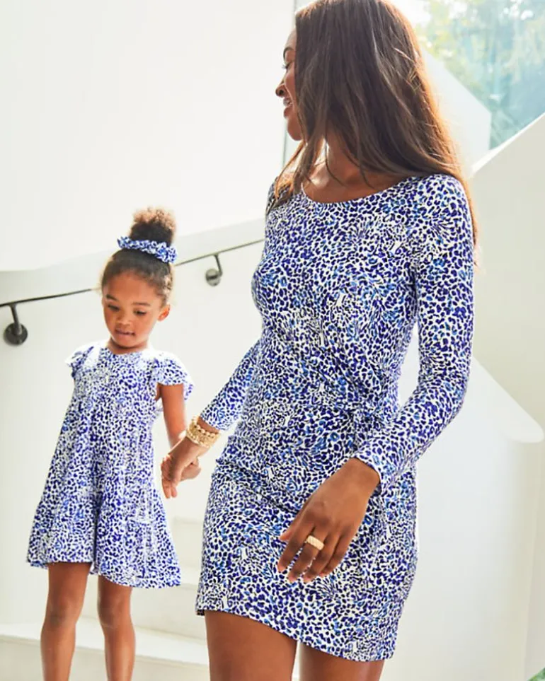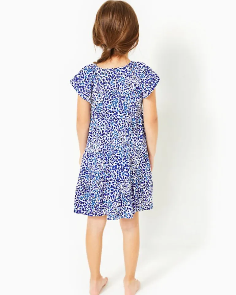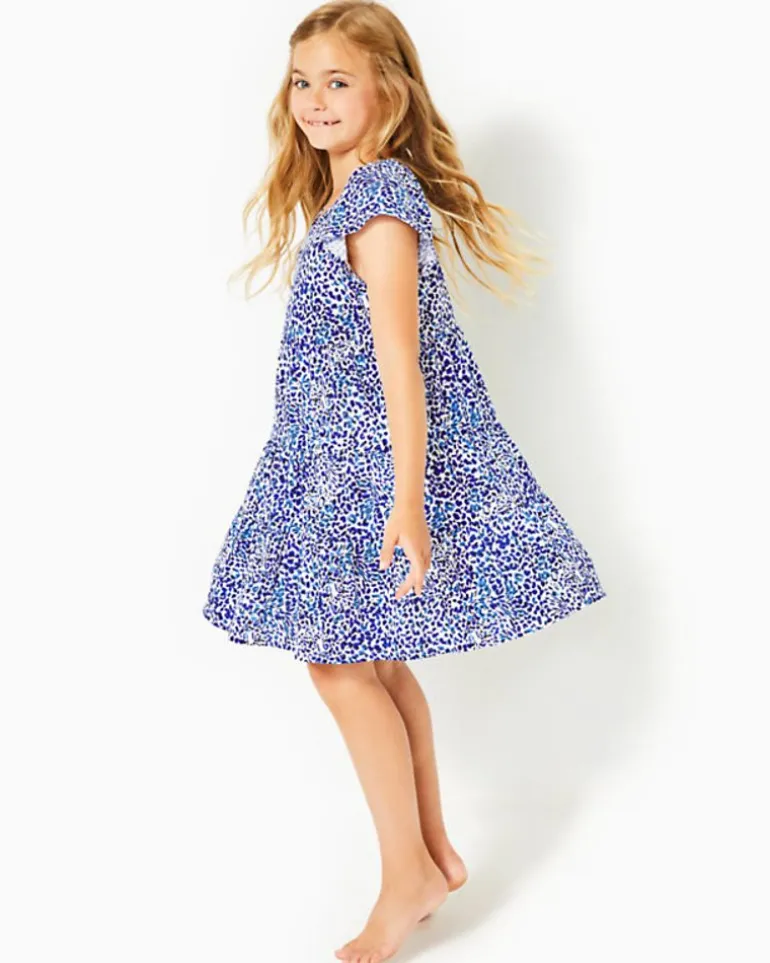Share Some Lilly Print With Your Little Courtesy Of The Mini Kawai Dress, A Swingy, Tiered Style In Cotton Jersey With A V-Neckline And Short Flutter Sleeves.