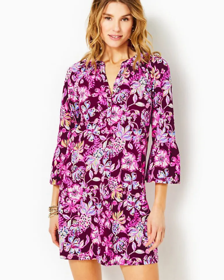Soft And Easy In Printed Cotton Jersey, The Norris Dress Is An Everyday Wardrobe Essential. This Above-The-Knee Style Offers 3/4-Length Ruffle Sleeves And A Smocked Neckline Accented By Gold Buttons.
