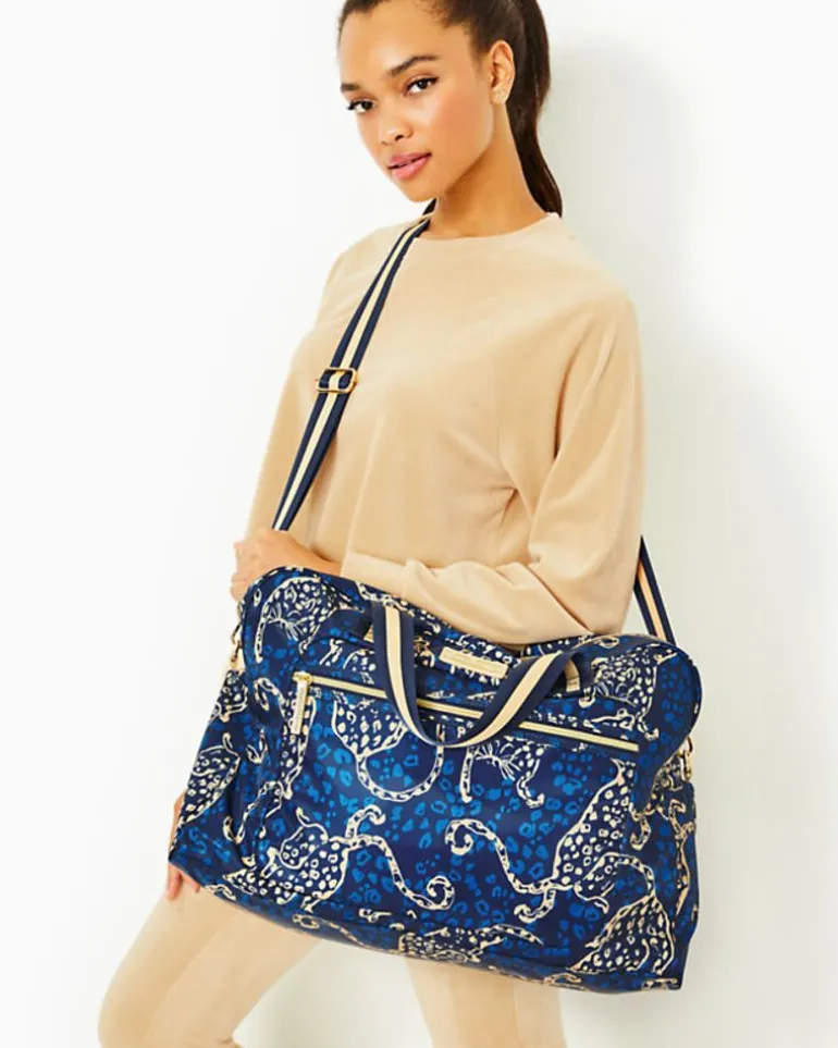 A Stylish And Spacious Companion For Your Next Getaway, Our Beale Weekender Is Fashioned From Matte Poly Fabric In A Vibrant Print And Accented By Striped Webbing.