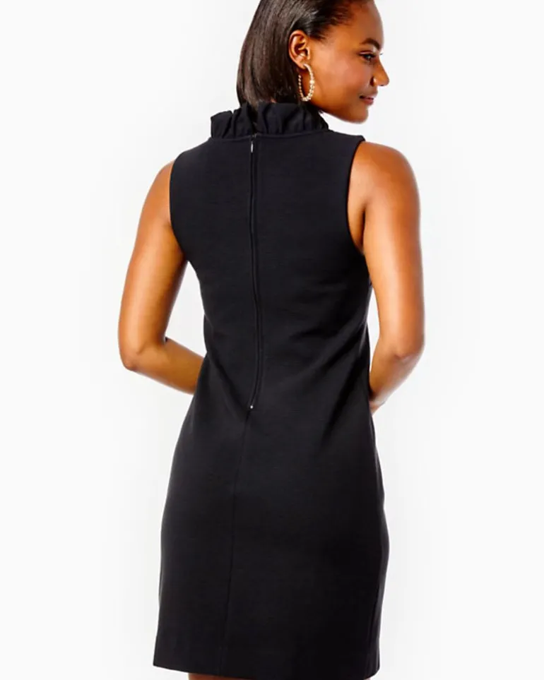 Feminine Ruffles Frame The Neckline Of Our Tisbury Shift Dress, A Classic, Sleeveless Style Made From Textural Ottoman Yarn.