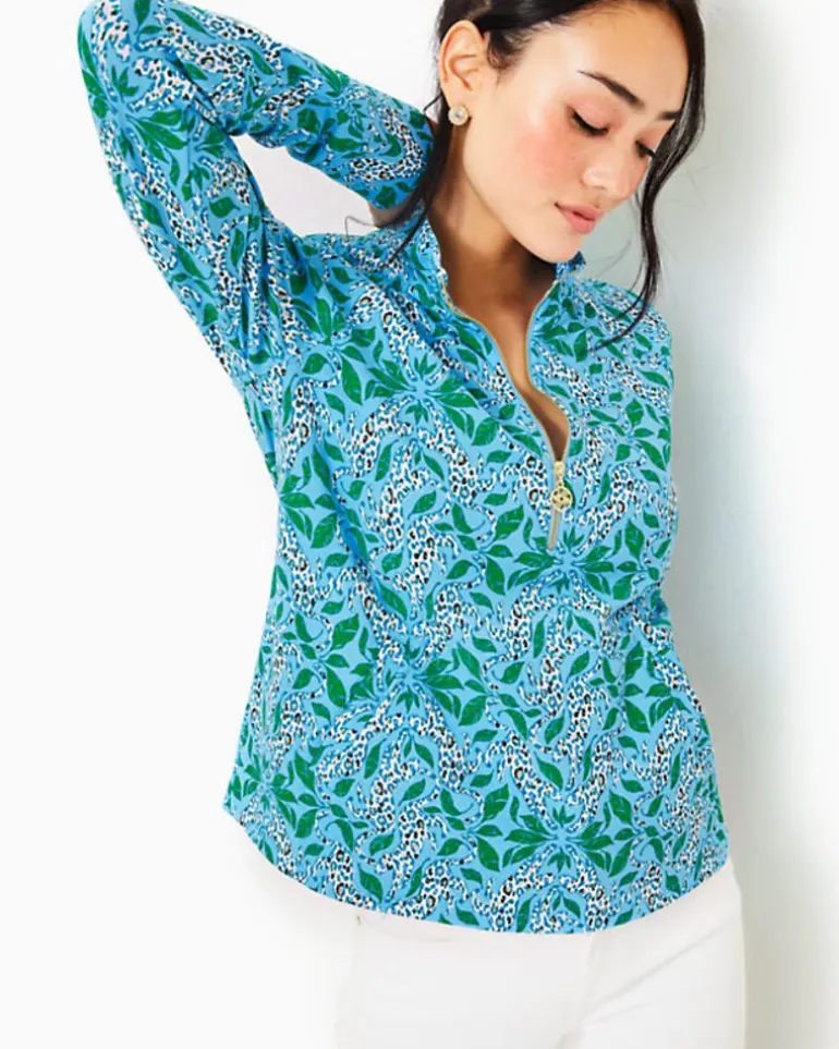 The Perfect Layering Piece For Active Days, Our Melena Popover Features A Swingy Fit And Long, Cuffed Sleeves. The Machine Washable Luxe Terry Fabric Offers Both Upf 50+ Sun Protection And A Vibrant Lilly Print That Brings Some Sunshine Wherever You Go.