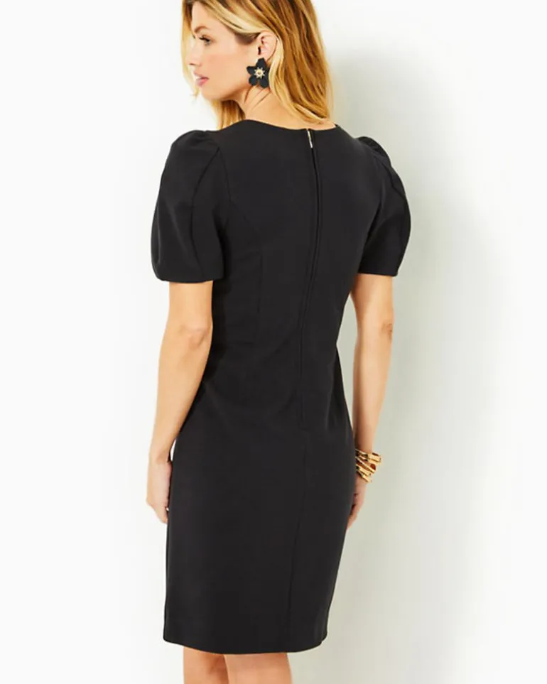 Comfy Yet Chic In A Knit Fabric, Emilie Is A Fitted Shift Dress With A Crew Neckline And Short Puff Sleeves. Vertical Seams Give This Above-The-Knee Shift A Singularly Flattering Silhouette.