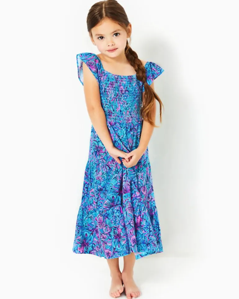 Treat Your Mini To Some Magical Lilly Print In The Form Of Our Girls Mini Jilly Midi Dress. This Easy-Breezy Cotton Jersey Style Features A Tiered Ruffle Skirt, Comfy Smocked Bodice, And Sweet Flutter Sleeves.