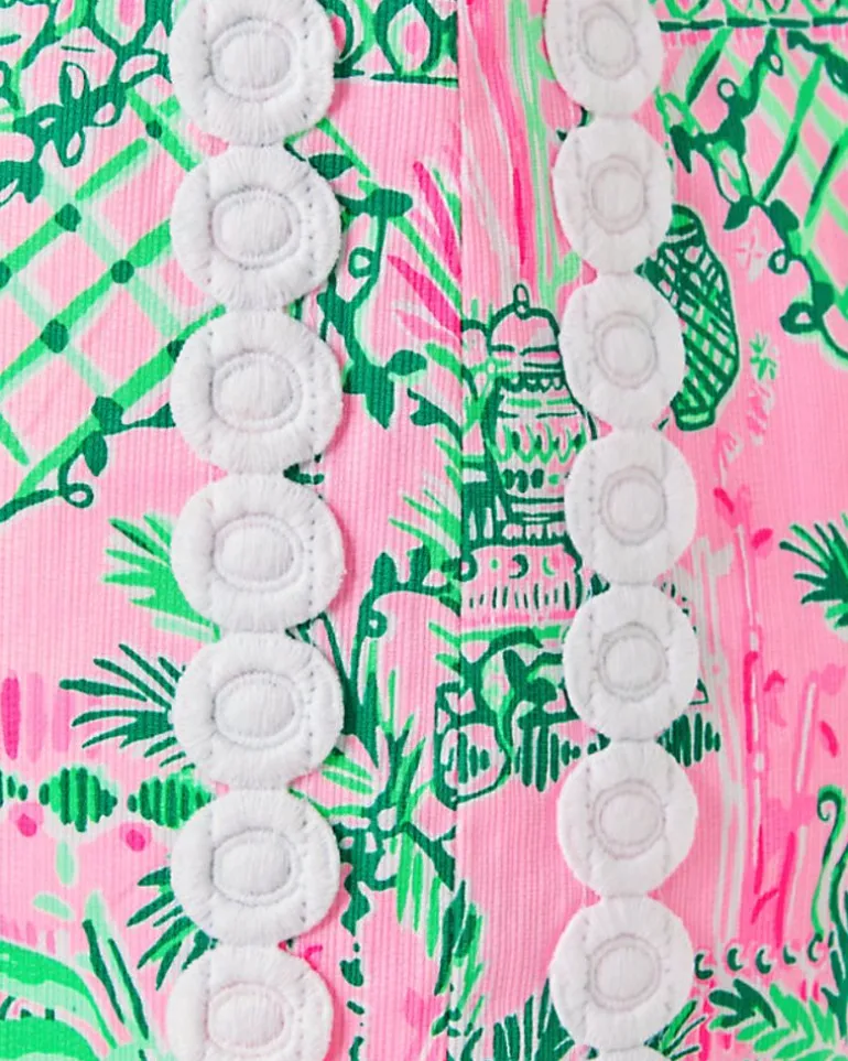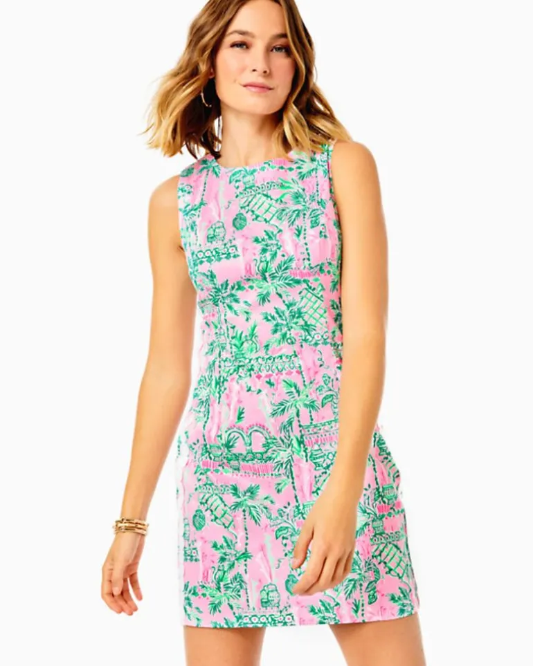 A Lilly Staple With A Hint Of Stretch, The Mila Stretch Shift Features A Straight Silhouette With A Crew Neckline And Bra-Friendly Fit. Lilly Lace Trim And An Exposed Back Zipper With A Novelty Pull Complete The Look.