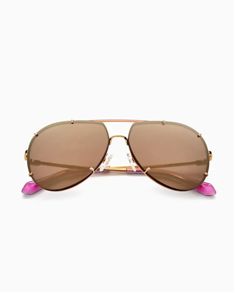 - 2 Frame Options: Shiny Gold And Enamel Pink With Gimme The Juice Tips Or Shiny Gold And Enamel Blue With Once In A Melon Tips.