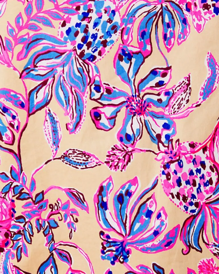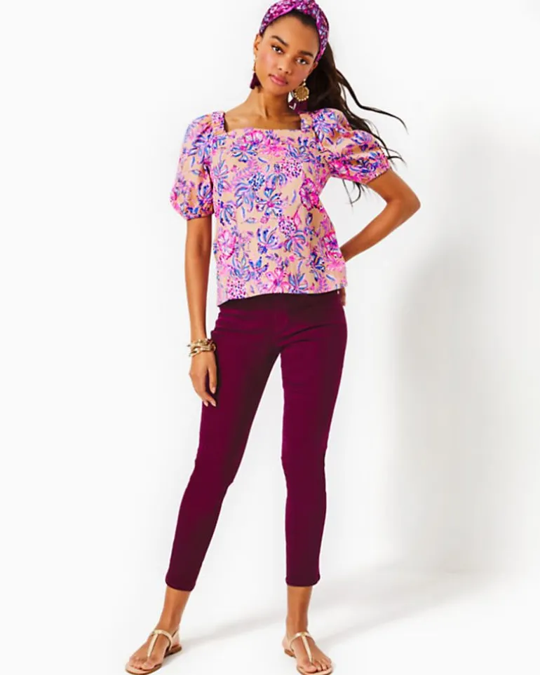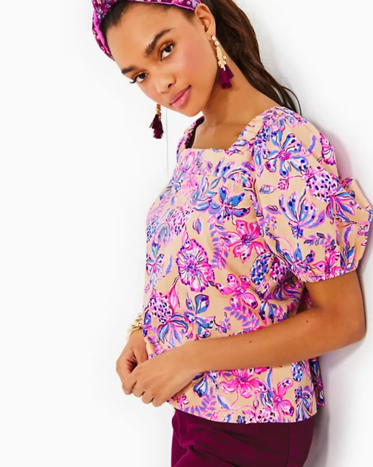 Printed Poplin Lends Crisp Texture And The Perfect Hint Of Stretch To The Torrey Top, An Easy Fit Style With A Square Neckline, Short Puff Sleeves, And A Tie Back.