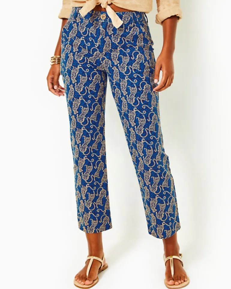 - High Rise, Fly Front, Double Weave, Straight Fit Pant. Interior Waistband With Elastic For Added Comfort.