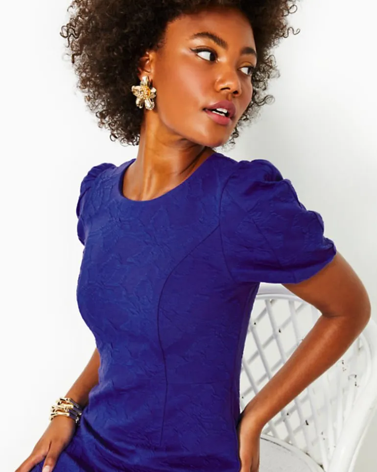 Comfy Yet Chic In Knit Jacquard, Emilie Is A Fitted Shift Dress With A Crew Neckline And Short Puff Sleeves. Vertical Seams Give This Above-The-Knee Shift A Singularly Flattering Silhouette.