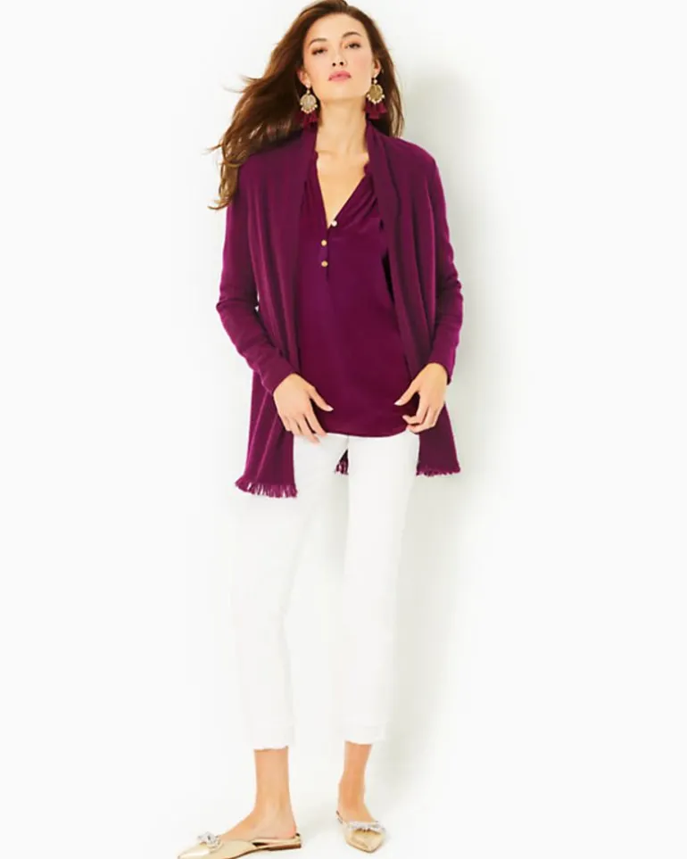 Add A Luxe Layering Piece To Your Closet With The Noble Cardigan, A Plush Cashmere Design Accented By Mixed Stitching And A Fringe Hem.