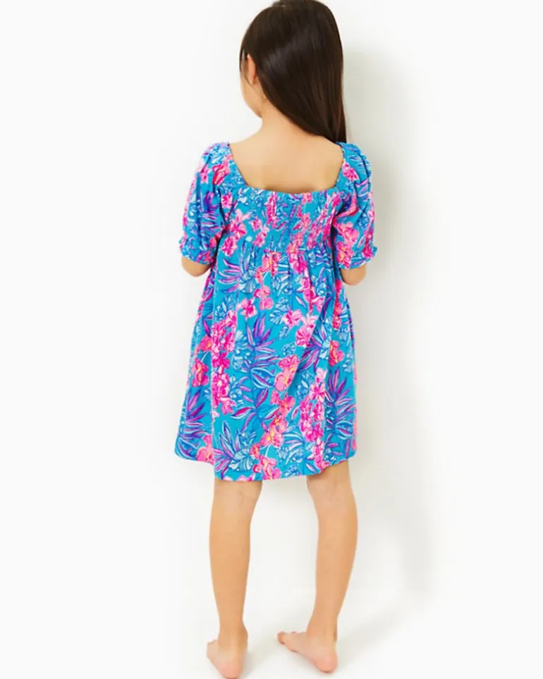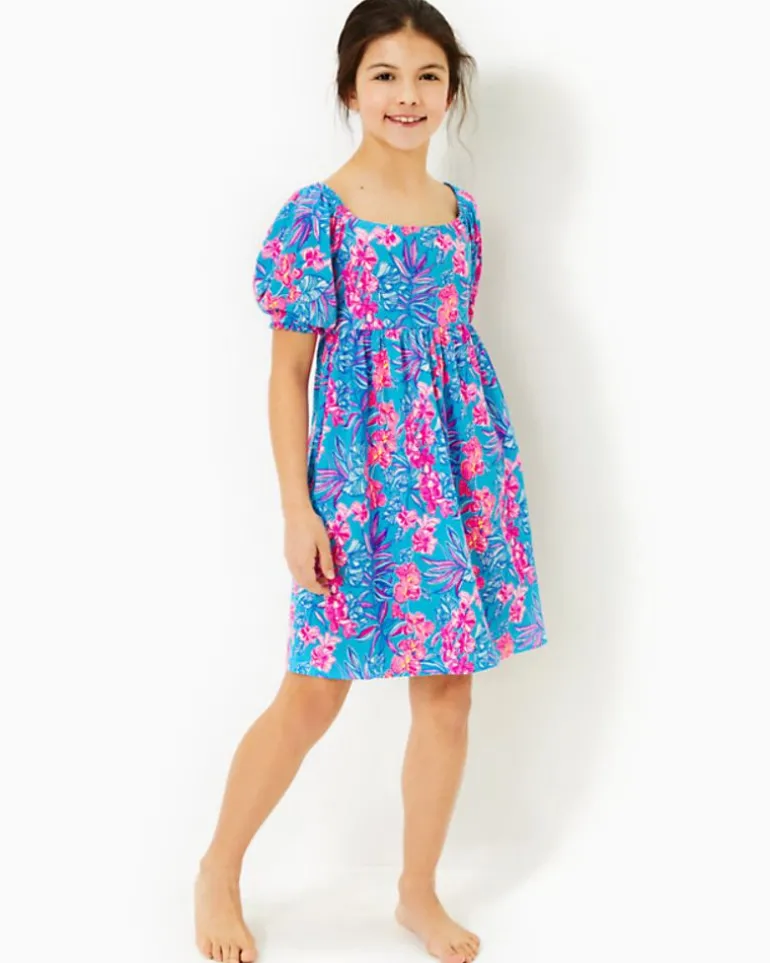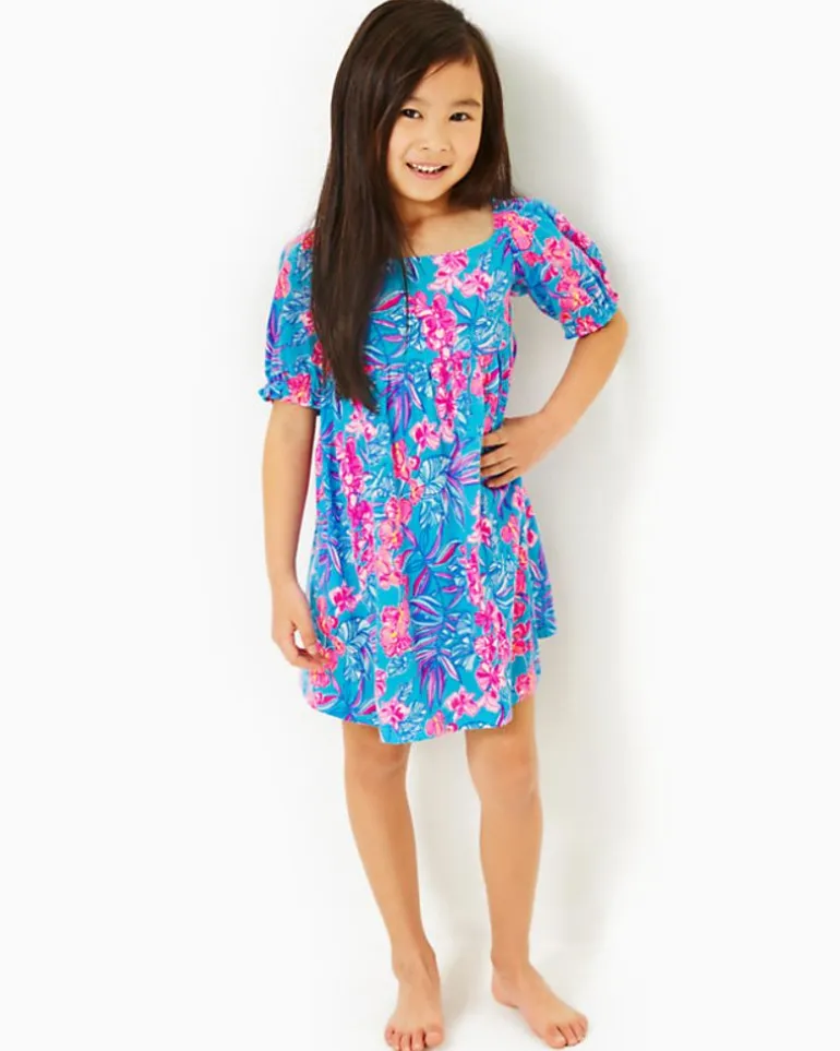 Bright And Breezy In Printed Cotton Jersey, Our Mini Delaney Dress Will Delight Your Little With Its Swingy, Empire Waist Silhouette And Puff Sleeves.