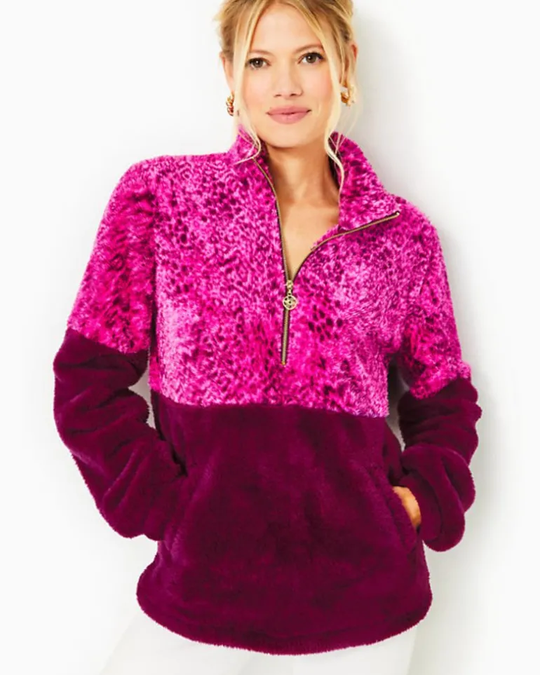 Cozy Up To Keala, An Easy Fit Sherpa Popover In A Chic Colorblocked Design. This Half-Zip Style Is Finished With Thoughtful Details Including Lilly Logo Hardware And Welt Pockets.