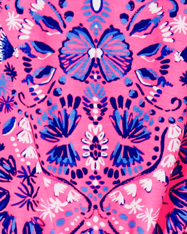 Look Getaway Glam In Our Bowen Halter Top. This Draped Blouson Style Features A Bottom Band, Center Back Keyhole Detail, And Chain-Trim Neckline. Topped With An Iconic Lilly Print, It Brings Chic Charm To Any Sunny Outing.