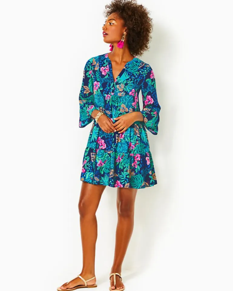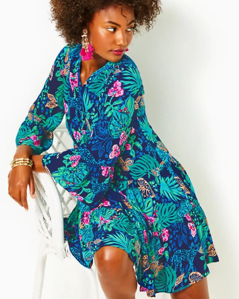 Delight Is In The Details Of Our Gabriel Dress. Fashioned In An Easy-Fit Tunic Style, It Catches The Eye With Tiers Along The Skirt, Ruffled 3/4-Length Sleeves, And A Front Bib With A Half Placket. Its Bright Lilly Print Is Beautifully Displayed On Our Lightweight, Machine Washable Lileeze Fabric.