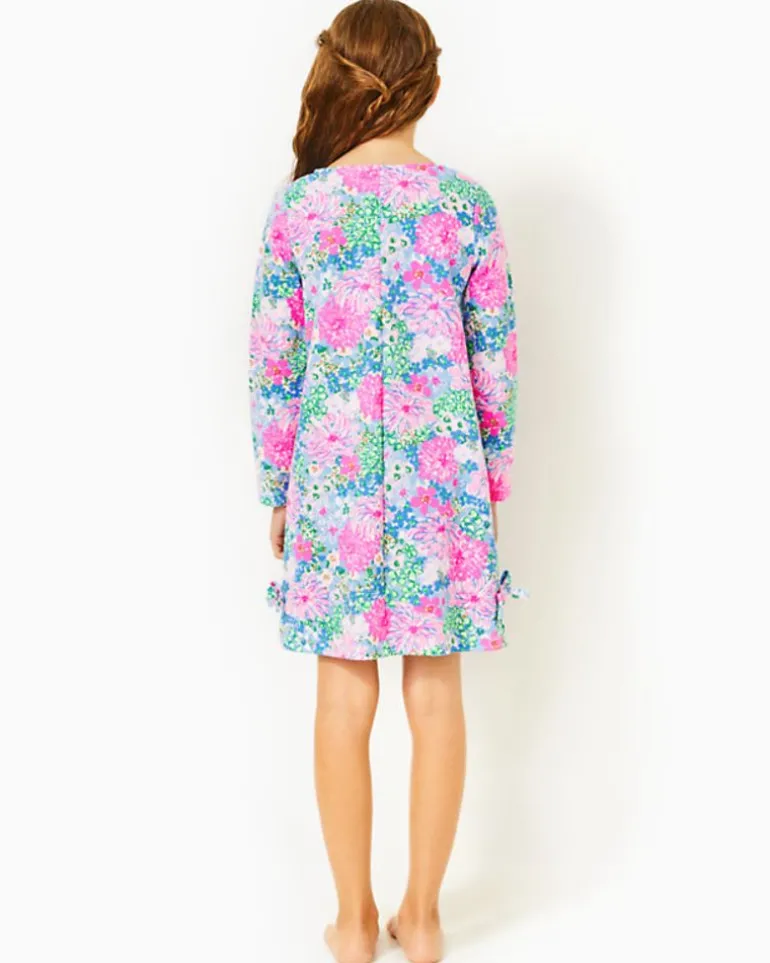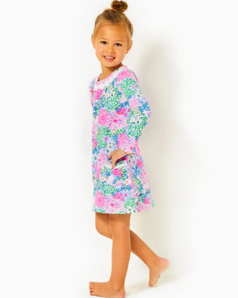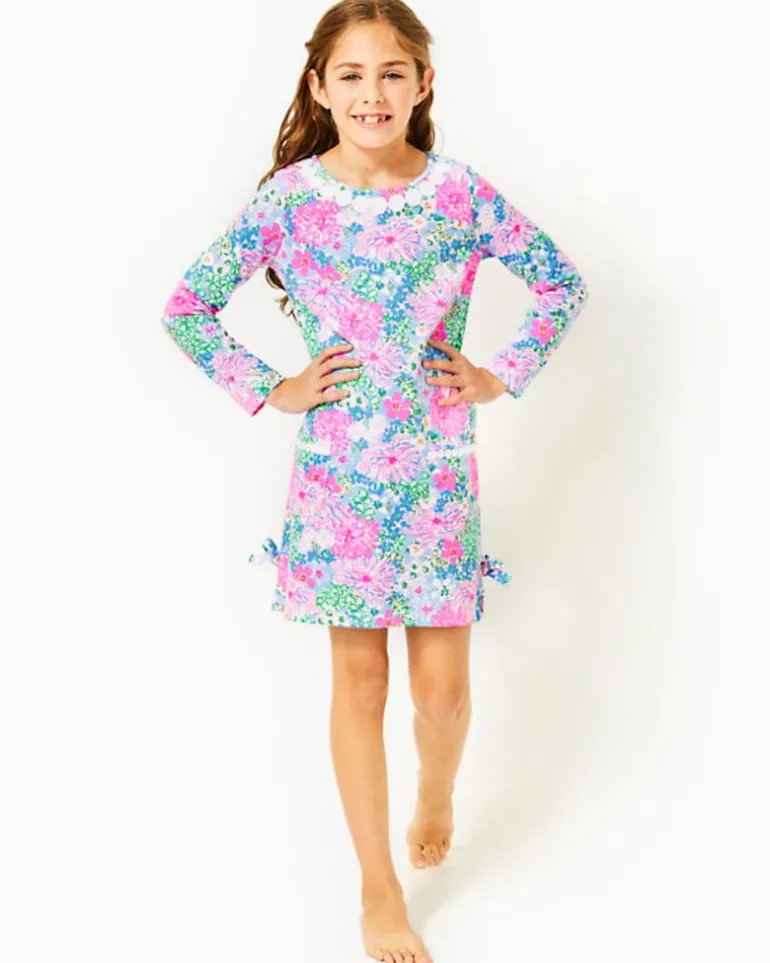 Meet Our Girls Little Lilly Knit Shift – A Vibrant Burst Of Happiness For Your Little One’S Wardrobe! This Classic Shift Dress Boasts An Easy, Carefree Fit, Adorned With Adorable Hem Bows And Lilly Lace Trim. With Playful Front Patch Pockets, Long Sleeves, And A Sunny Back Zipper, This Dress Radiates Colorful, Imaginative Fun.