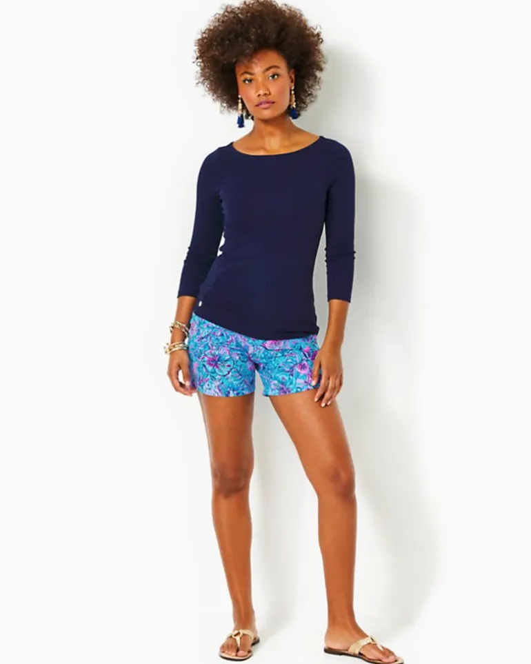 Made From Our Soft Tropical Rib Fabric For A Fitted Silhouette, The Halee 3/4-Sleeve Top Is A Wardrobe Staple. Pair This Machine Washable, 3/4-Sleeve Pullover Tee With Your Favorite Printed Shorts, Pants, And Skirts For Endless Outfitting Options.