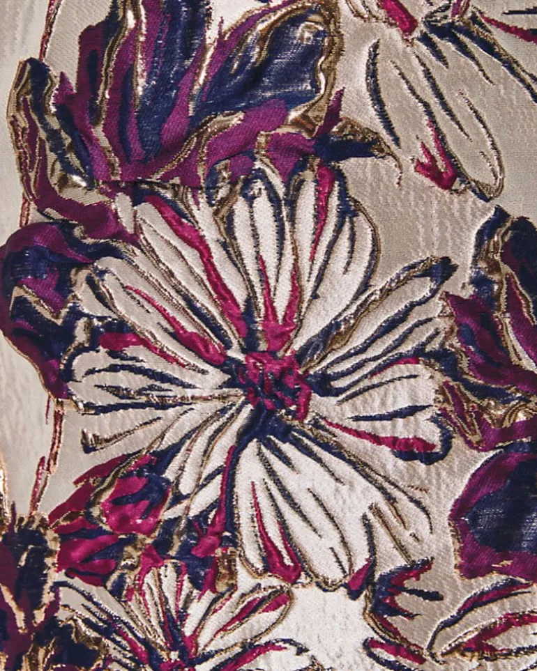 - Fete Floral Brocade (78% Polyester, 17% Metallic, 5% Nylon).