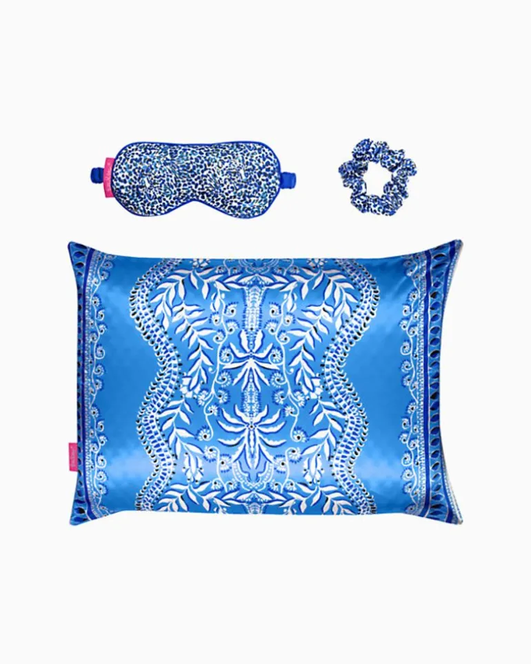 Self-Care Has Never Looked So Stylish! Feel Refreshed And Restored After A Good Night’S Sleep With This Three-Piece Set, Which Includes A Soft Satin Pillowcase, Eye Mask, And Scrunchie In A Vibrant Lilly Print.