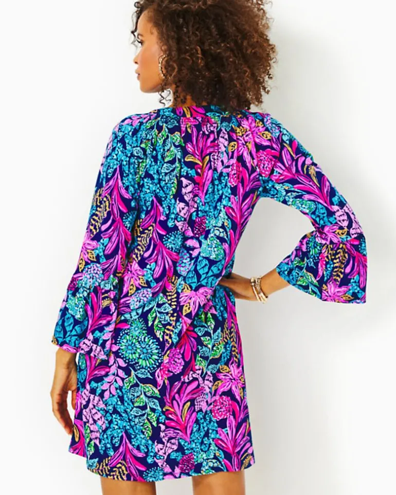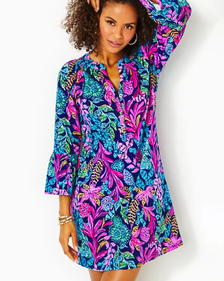 Soft And Easy In Printed Cotton Jersey, The Norris Dress Is An Everyday Wardrobe Essential. This Above-The-Knee Style Offers 3/4-Length Ruffle Sleeves And A Smocked Neckline Accented By Gold Buttons.