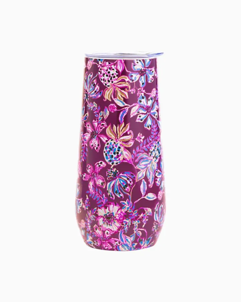 Wrapped In A Festive Print, This Double-Walled Stainless Steel Champagne Flute Is Perfect For Enjoying Some Bubbly At The Beach Or Pool. A Clear Acrylic Lid With A Silicone Seal Completes The Design.