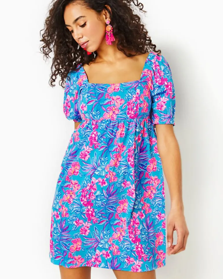 Keep Your Summer Style Fresh And Breezy In The Delaney Dress, A Cotton Jersey Design With Sweet Puff Sleeves. This Empire Waist Sundress Is Finished With Interior Bodice Cups And A Smocked Back Panel For A Fabulous Fit.