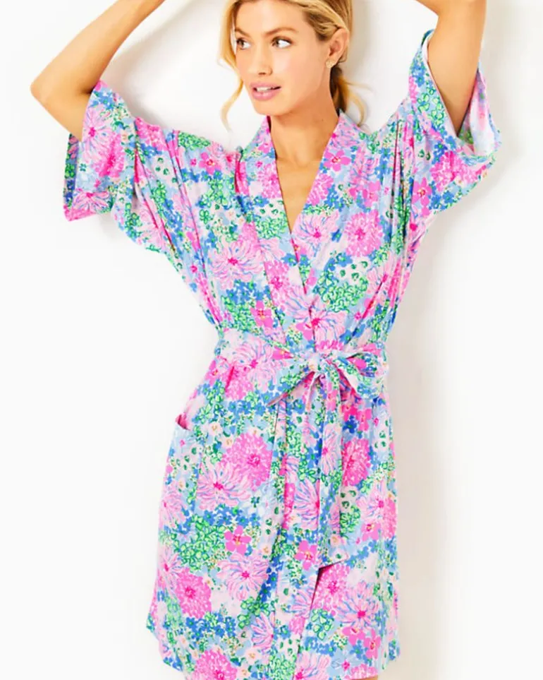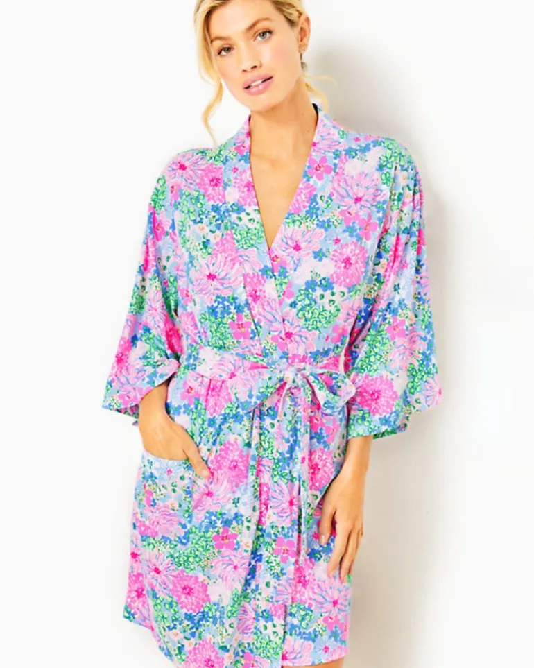 Delightfully Soft In Cozy Cloud Jersey, Our Elaine Knit Robe Makes The Perfect Cozy Gift. This Above-The-Knee Style Is Completed By 3/4-Length Kimono Sleeves, Patch Pockets, And A Tie Sash At The Waist.