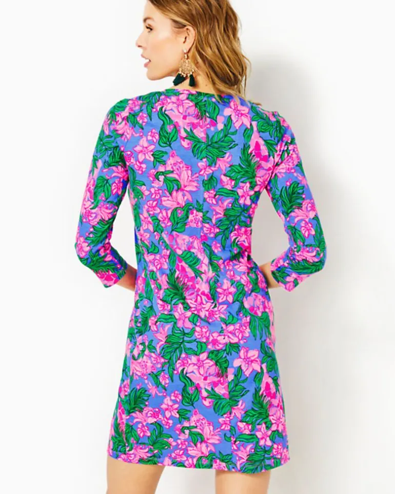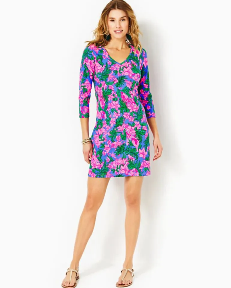 Effortlessly Colorful In Printed Supima Cotton Jersey, The Tessa Dress Is An Everyday Essential. This Straight Fit T-Shirt Dress Features A Classic V-Neckline And 3/4 Length Sleeves.