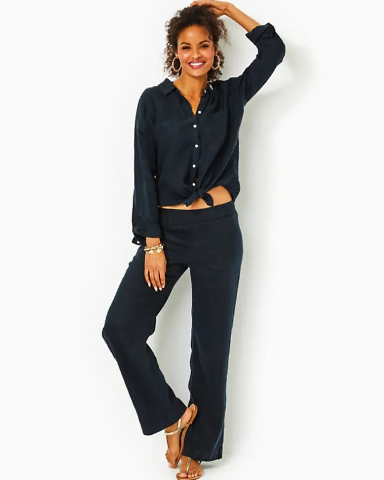 Perfectly Breezy In Our Machine Washable Lagoon Linen&Trade;, The Deri Palazzo Is A Mid-Rise, Pull-On Pant With A Flowy Wide Leg Silhouette. Made From Natural European-Grown Fibers, This Style Will Get Softer And More Luxurious With Every Wash And Wear.