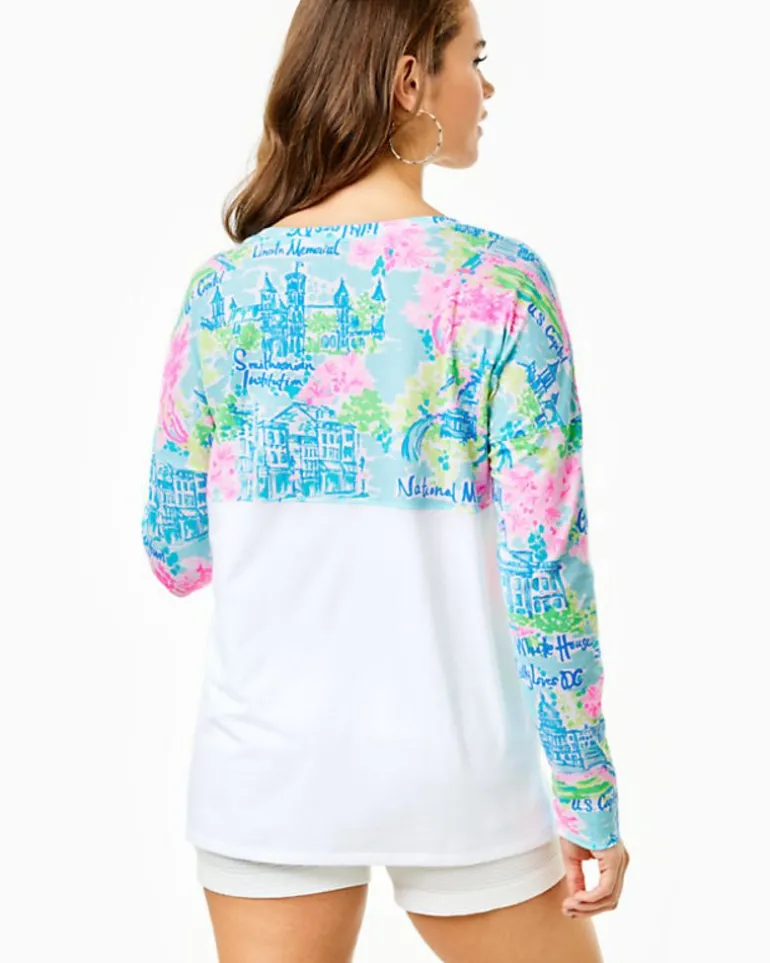 Casual And Colorful, The Finn Top Is A Weekend Wardrobe Favorite. This Boat Neck Pullover Is Made From Our Coastal Jersey Fabric For An Amazingly Comfy Feel. Yoke Seam Details Divide The Vibrant Printed Top And Solid Custom Color Bottom.