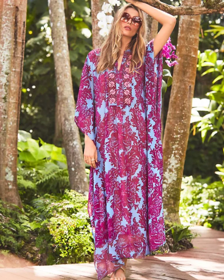 From Poolside To Party, The Julieta Caftan Is Sure To Make A Statement. This Chiffon Maxi Features An Easy, Ankle-Length Silhouette With An Intricately Embellished Placket. Wear Over A Swimsuit Or With The Included Jersey Slip.