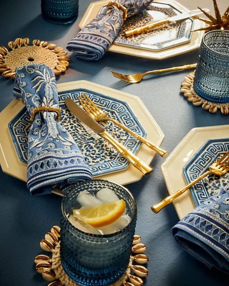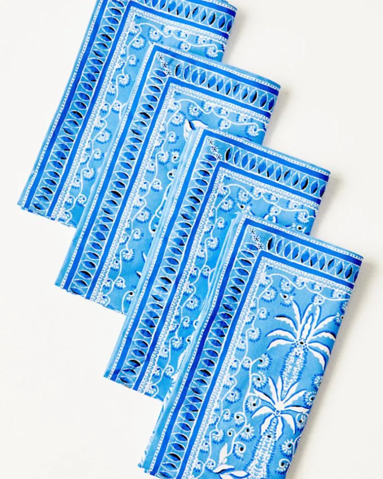- Set Of 4 Printed Cotton Dinner Napkins With A Border.