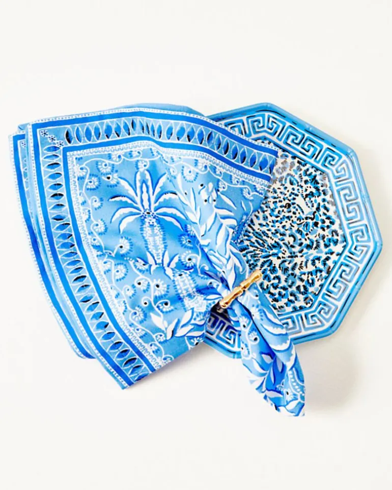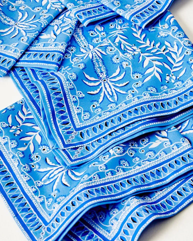 This Set Of Four Printed Cotton Dinner Napkins Features An Intricately Detailed Design At The Border That Will Add An Elegant Touch To Your Table.